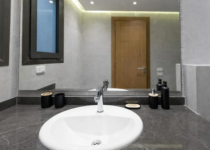 Si te alojas en el Best View 3Master Suites At Lake View Residence El El Cairo, podrás relajarte en su terraza. El apartamento se encuentra a 3 km de la Universidad Americana en El Cairo. Este apartamento dispone de Wi-Fi y un aparcamiento privado gratuito.